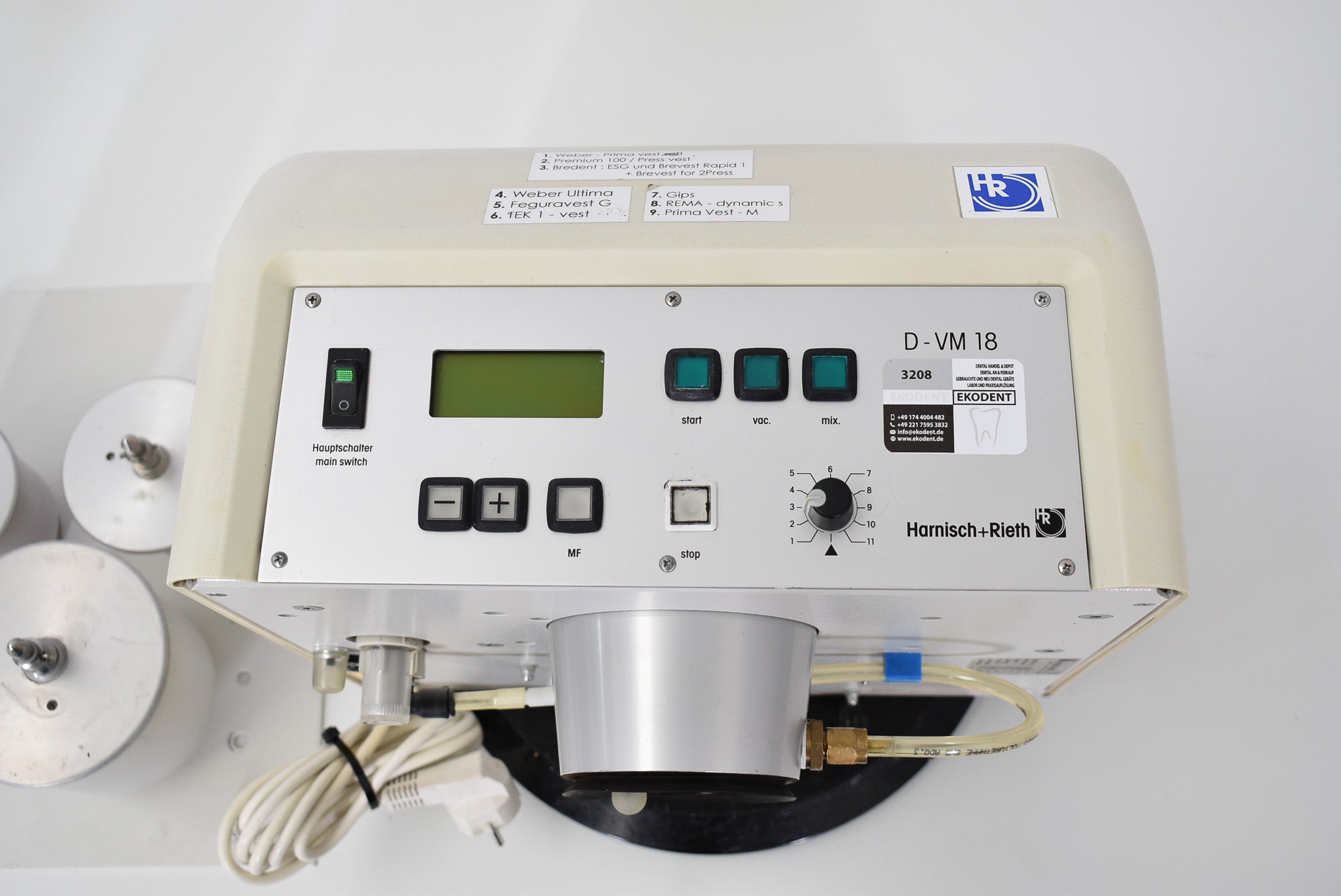 Produktprüfung: Bitte beachten Sie, dass alle unsere Geräte ausschließlich vor Ort, beispielsweise in zahnärztlichen oder zahntechnischen Laboren, getestet werden. Nach diesen Tests erfolgen keine weiteren Überprüfungen. Eventuelle Mängel, die während der Prüfung festgestellt oder sichtbar werden, beschreiben wir explizit in der Produktbeschreibung.
